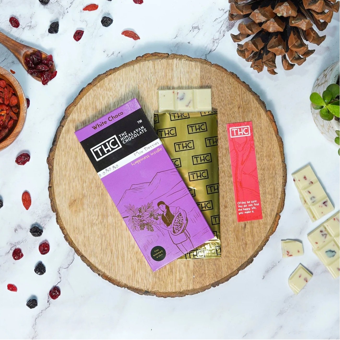 Treat yourself with the Mix berries to the perfect balance of rich, velvety chocolate and a vibrant mix of Goji, Cranberries, and Blackberries. Each bite offers a delightful mix of sweet and bold flavors, satisfying cravings while adding a touch of wholesome goodness for any time of day.